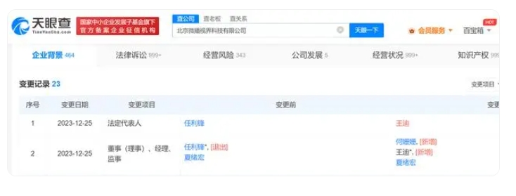 【任利锋已卸任抖音集团所有职务】近日,抖音关联公司北京微播视界科技有限公司发生工商变更,任利锋卸任法定代表人、执行董事、经理,由王迪接任。值得一提的是,任利锋近期还卸任上海沸寂科技有限公司、北京字节新异科技有限公司等抖音集团旗下公司职务。目前,任利锋名下已无抖音集团相关任职。据此前媒体报道,今年上半年,PICO副总裁任利锋已实际意义上处于离职状态。目前,任利锋飞书状态显示为“请假”。知情人士透露,任利锋将在年底正式离职。(鞭牛士)